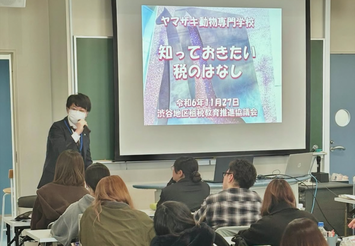 本校では毎年、渋谷税務署にご協力いただき、『アッセンブリーアワー』の授業内で「税金について」の講義を行っています。