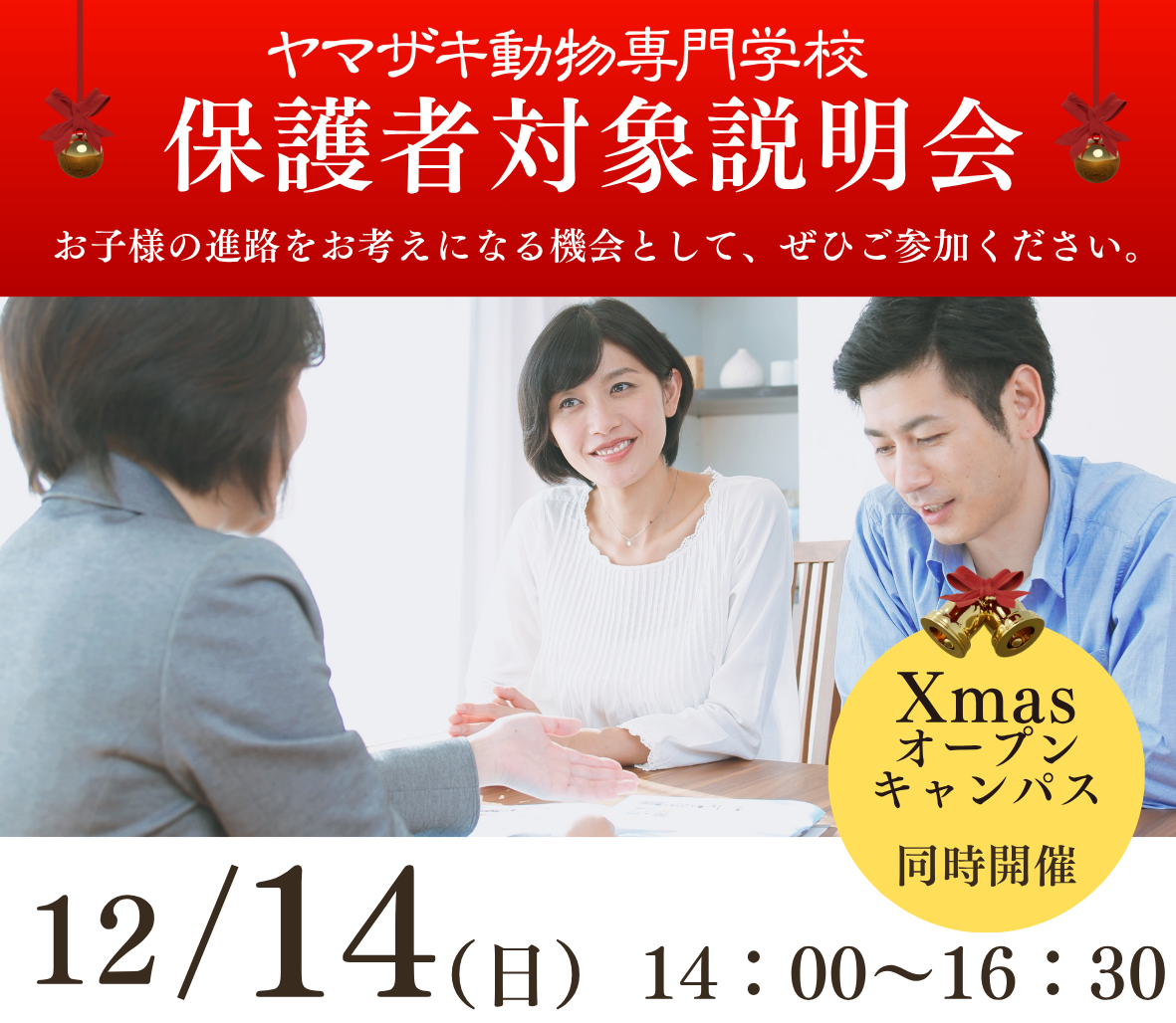 同日午前中は、ヤマザキ動物看護専門職短期大学のXmasオープンキャンパスを開催します。